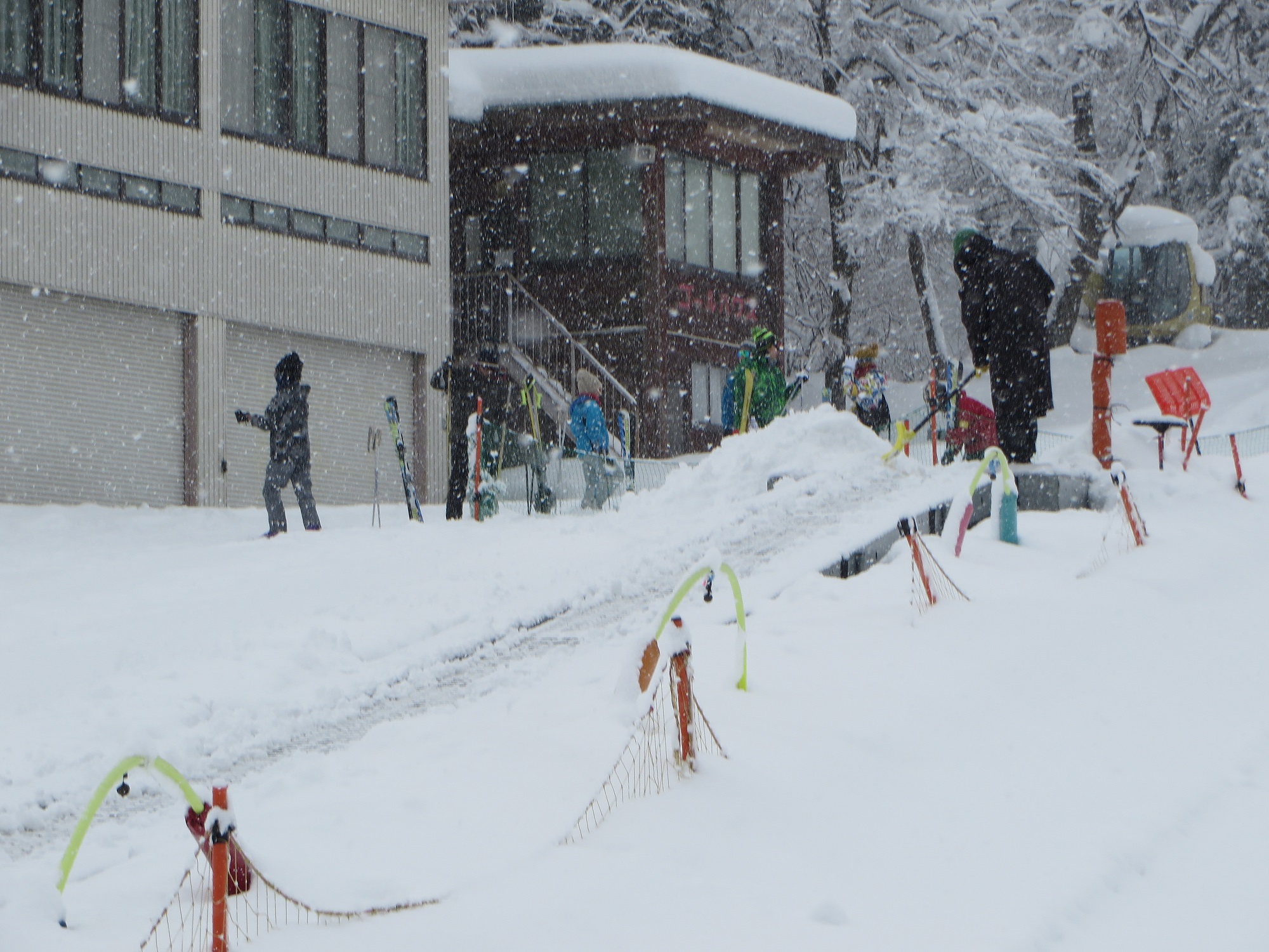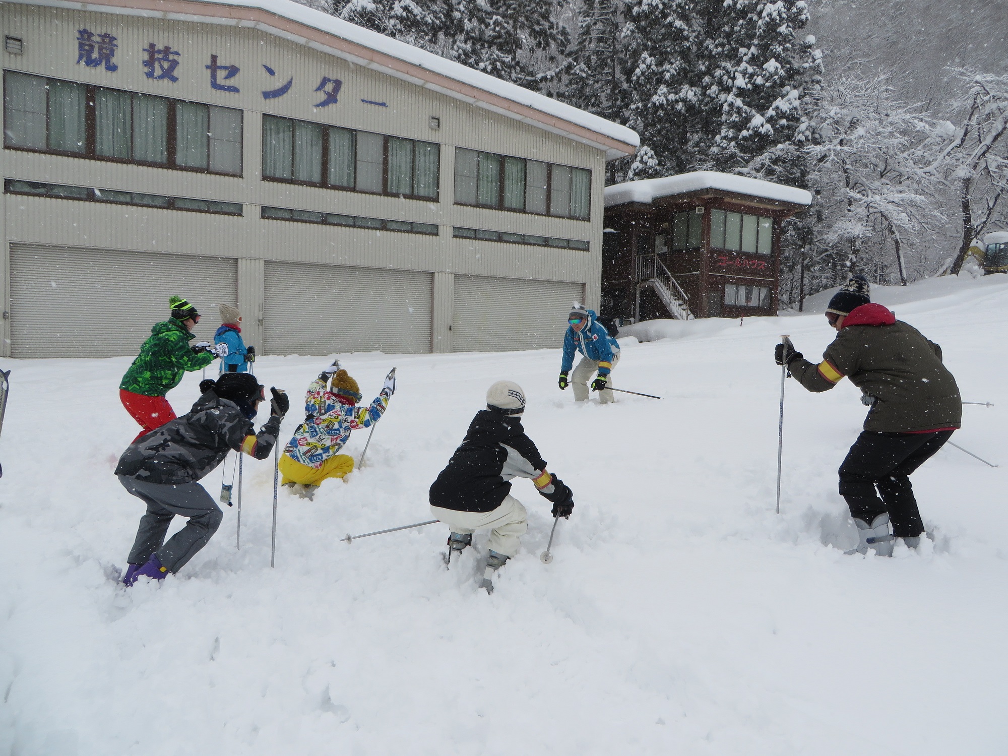 ゴーグルが曇って前が見えない、、滑る、、こける、、よっこいしょ。